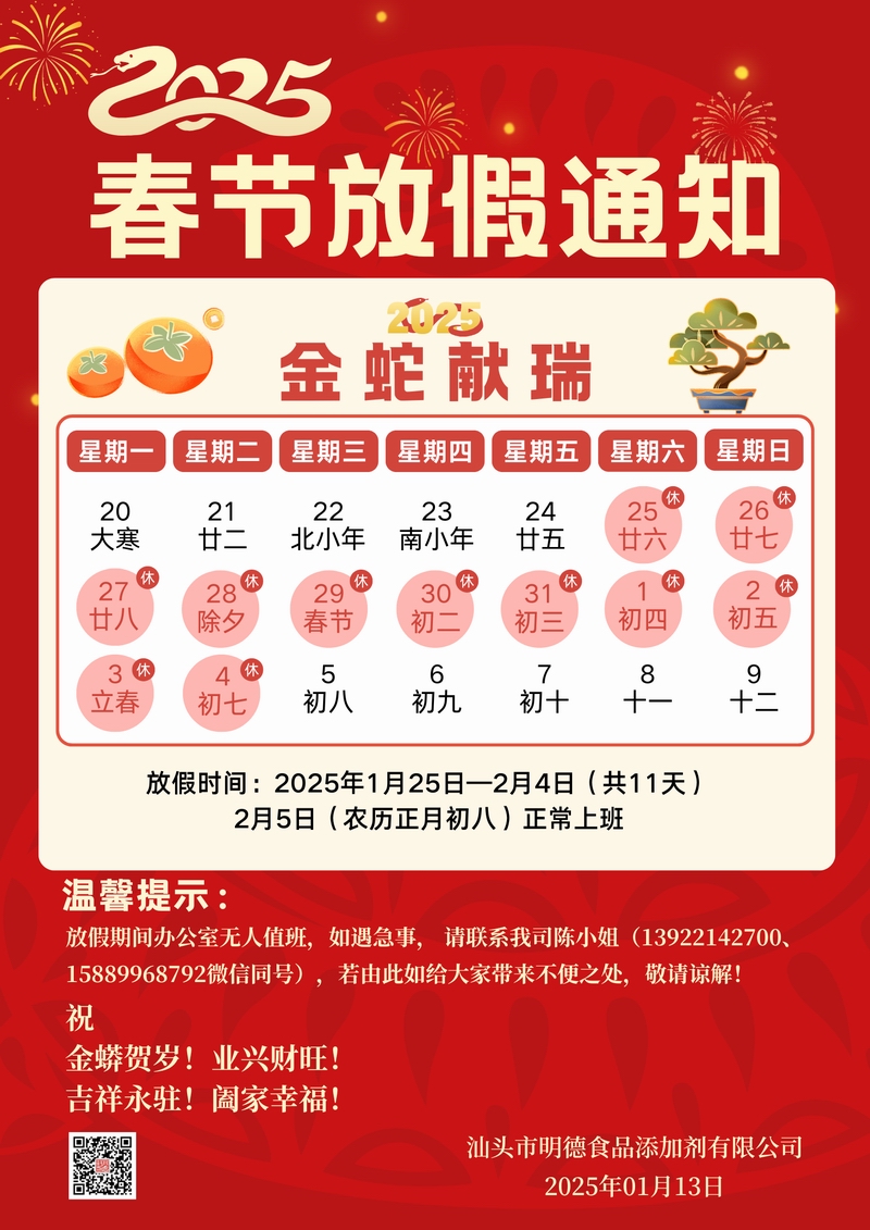 2025年春節(jié)假期通知,敬請留意